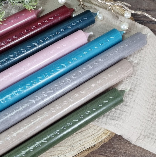 Adventskalenderkerze 25cm lang mit weisser Schrift