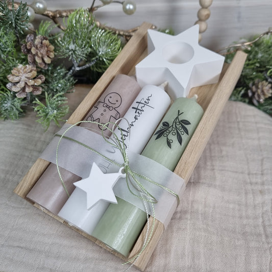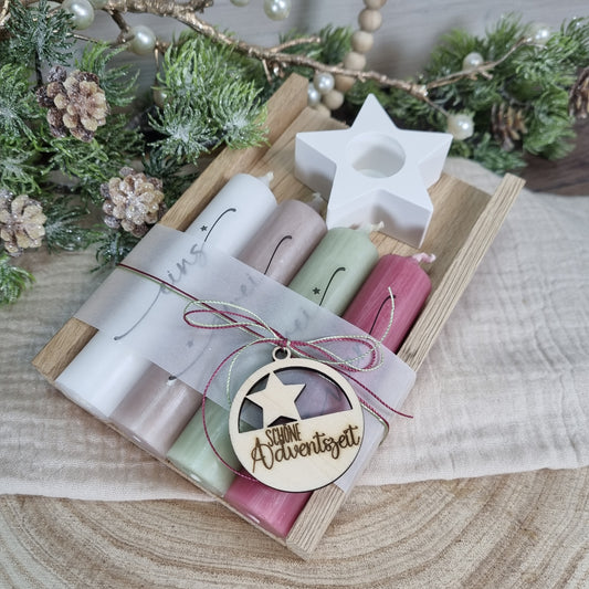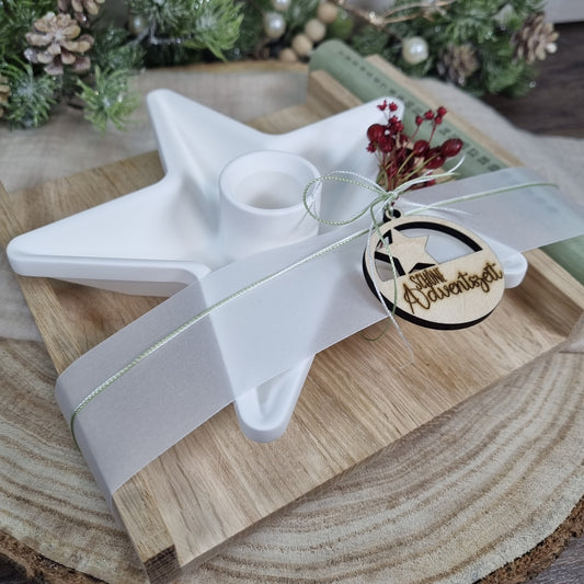Kerzenhalter Stern mit Adventskalenderkerze in Holzbox - Geschenkset